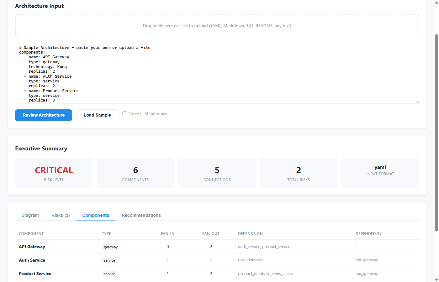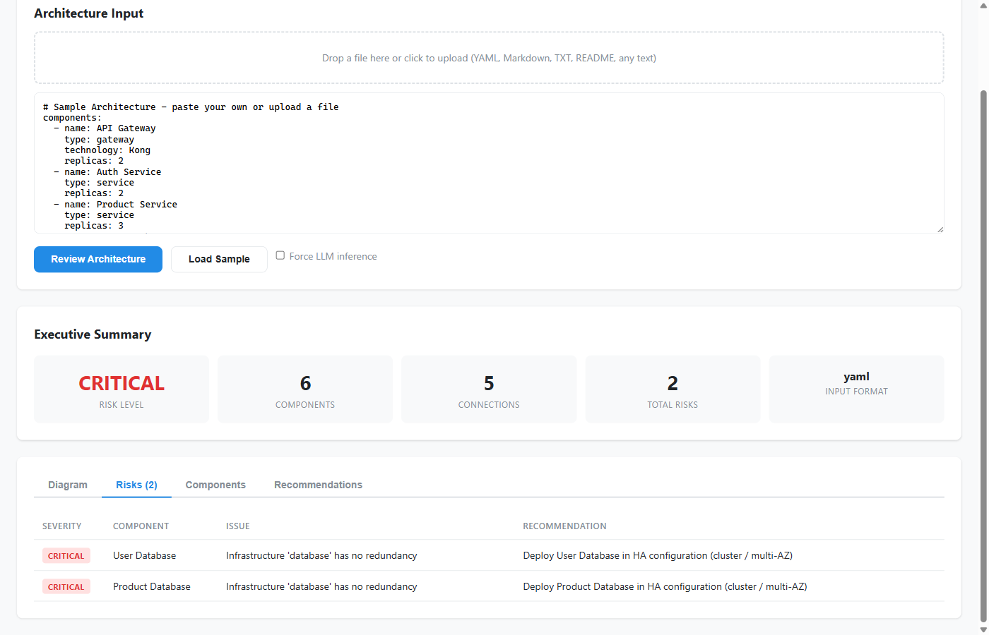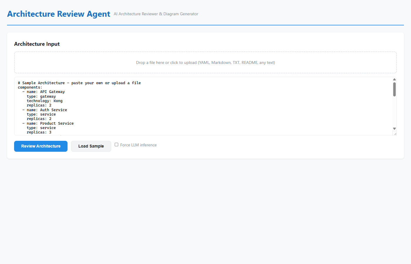 - Project detail page: Agent Architecture Review Sample